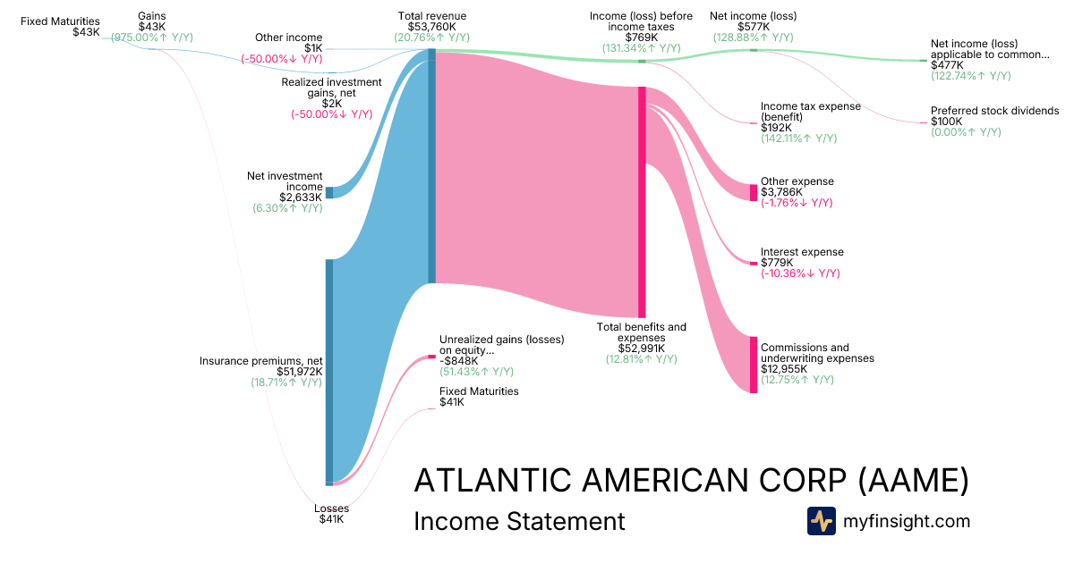 For the quarter ending 2025-09-30, AAME made $53,760K in revenue. $477K in net income. Net profit margin of 0.89%.