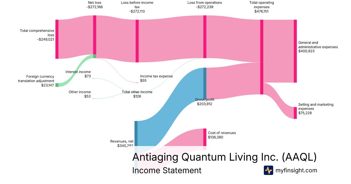 For the quarter ending 2025-12-31, AAQL made $340,292 in revenue. -$249,021 in net income. Net profit margin of -73.18%.