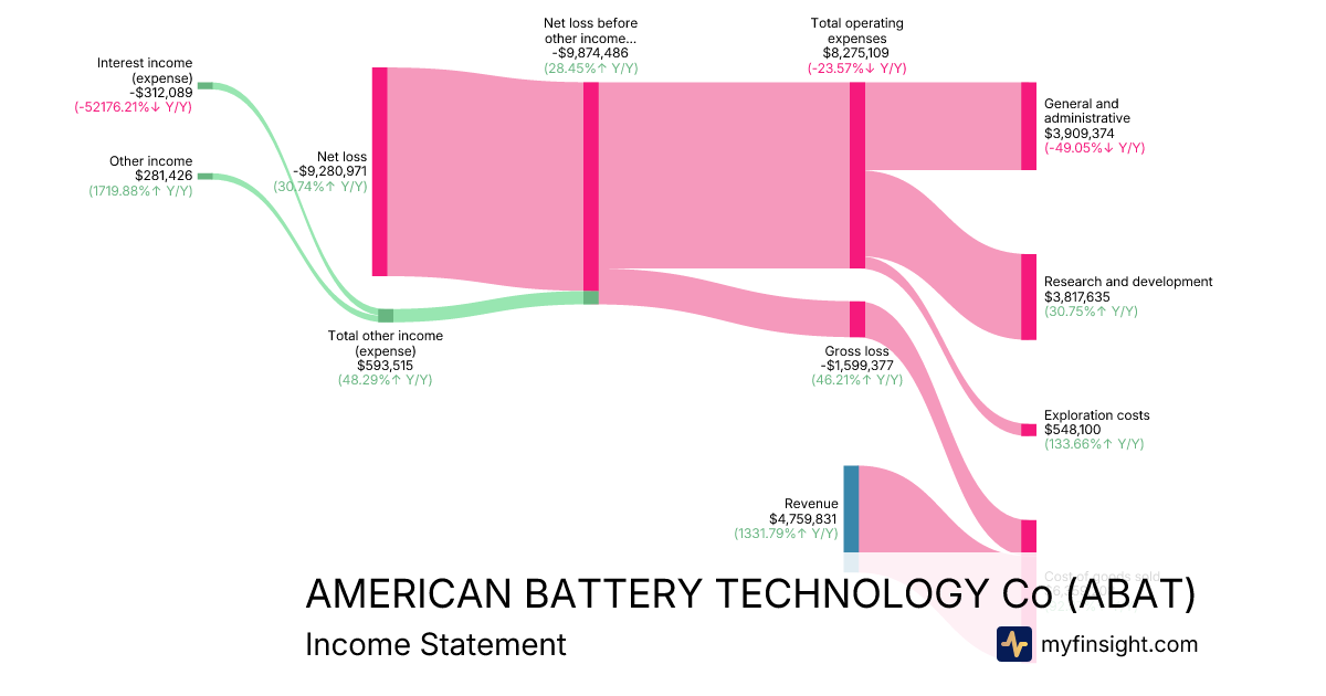 For the quarter ending 2025-12-31, ABAT made $4,759,831 in revenue. -$9,280,971 in net income. Net profit margin of -194.99%.