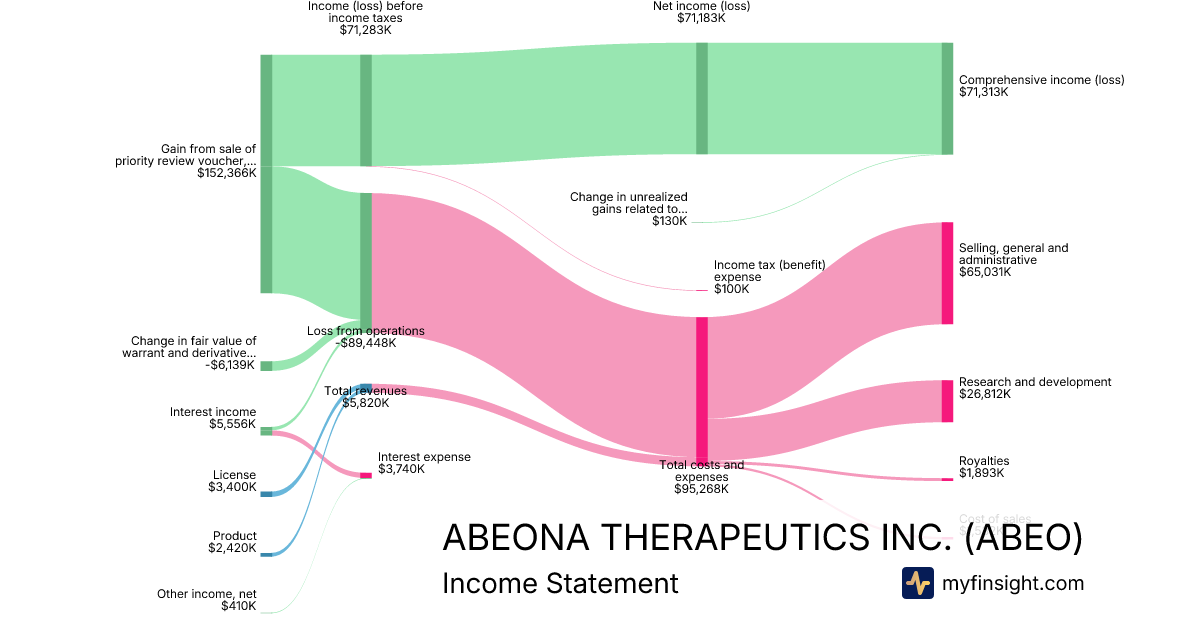 For the year ending 2025-12-31, ABEO made $5,820K in revenue. $71,313K in net income. Net profit margin of 1225.31%.