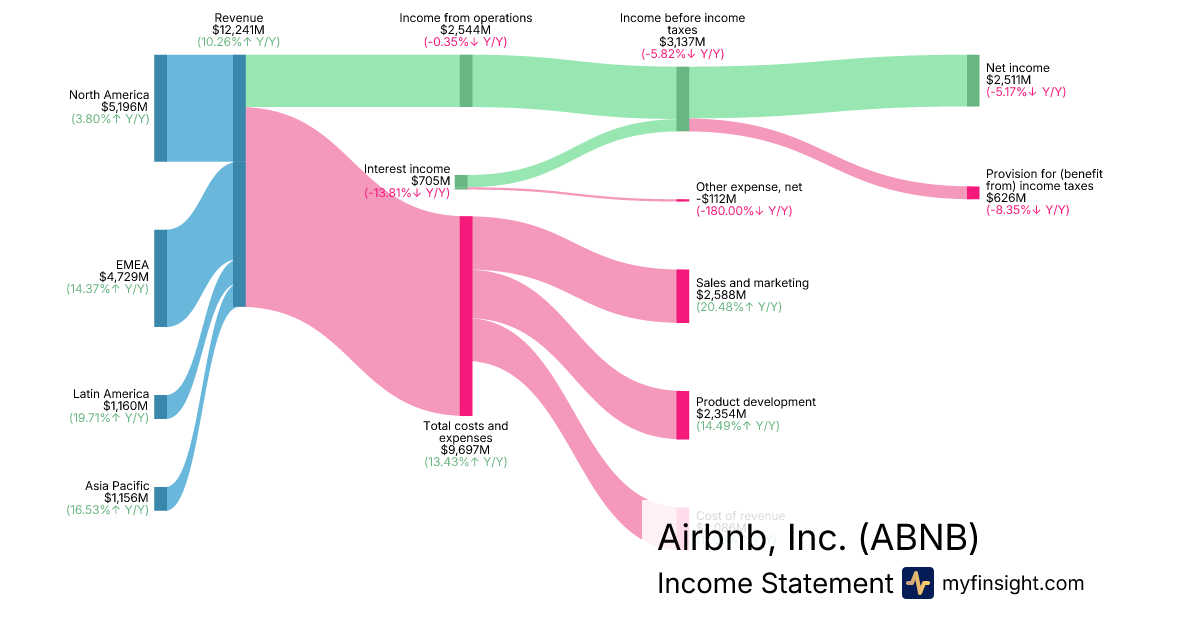 For the year ending 2025-12-31, ABNB made $12,241M in revenue. $2,511M in net income. Net profit margin of 20.51%.
