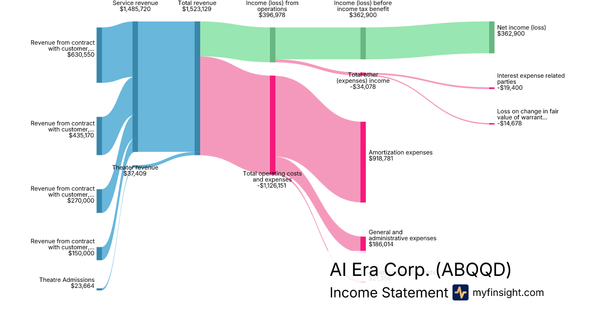 For the quarter ending 2025-11-30, ABQQD made $1,523,129 in revenue. $362,900 in net income. Net profit margin of 23.83%.