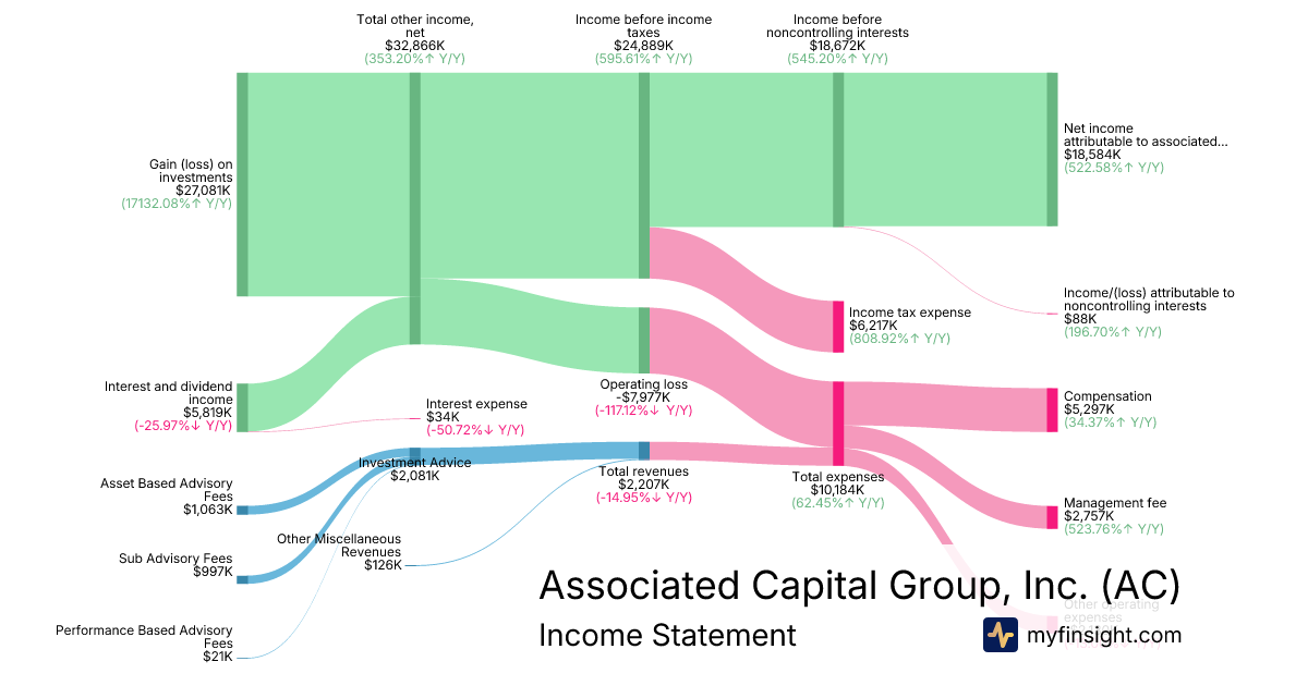 For the quarter ending 2025-06-30, AC made $2,207K in revenue. $18,584K in net income. Net profit margin of 842.05%.