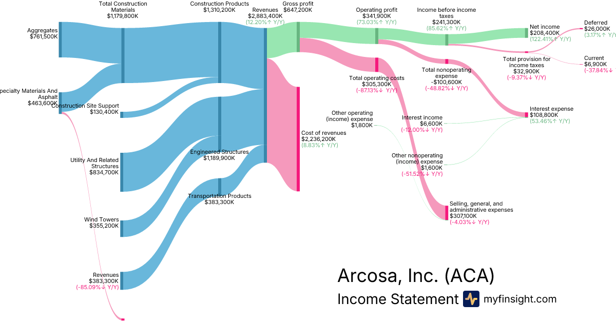 For the year ending 2025-12-31, ACA made $2,883,400K in revenue. $208,400K in net income. Net profit margin of 7.23%.