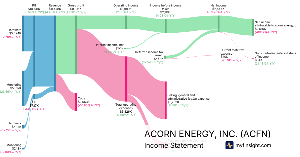 For the year ending 2025-12-31, ACFN made $11,478K in revenue. $2,510K in net income. Net profit margin of 21.87%.