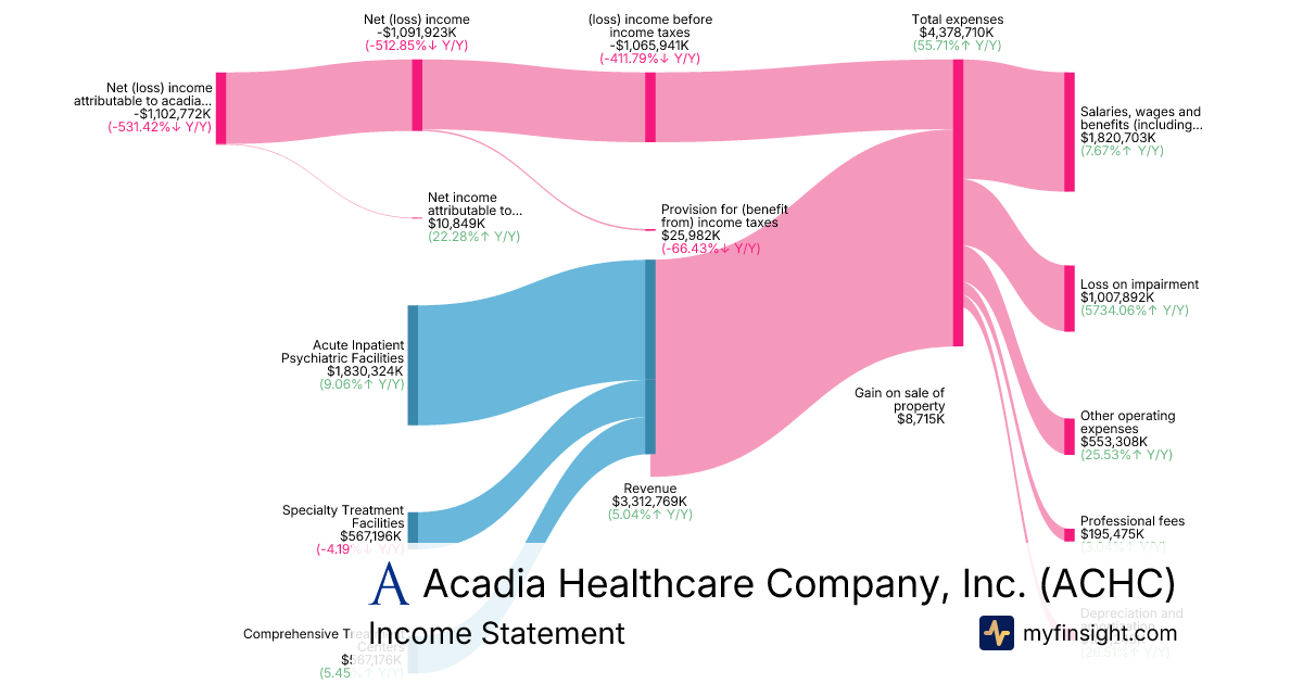 For the year ending 2025-12-31, ACHC made $3,312,769K in revenue. -$1,102,772K in net income. Net profit margin of -33.29%.