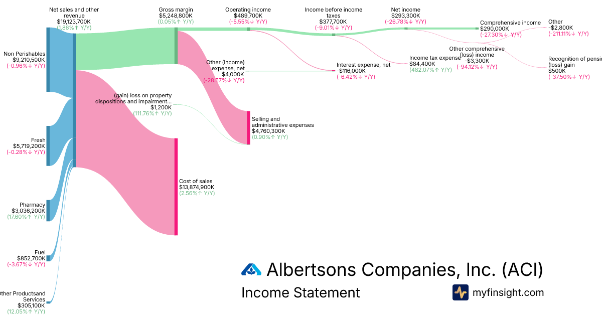 For the quarter ending 2025-11-29, ACI made $19,123,700K in revenue. $290,000K in net income. Net profit margin of 1.52%.