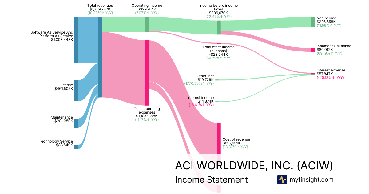 For the year ending 2025-12-31, ACIW made $1,759,782K in revenue. $226,658K in net income. Net profit margin of 12.88%.