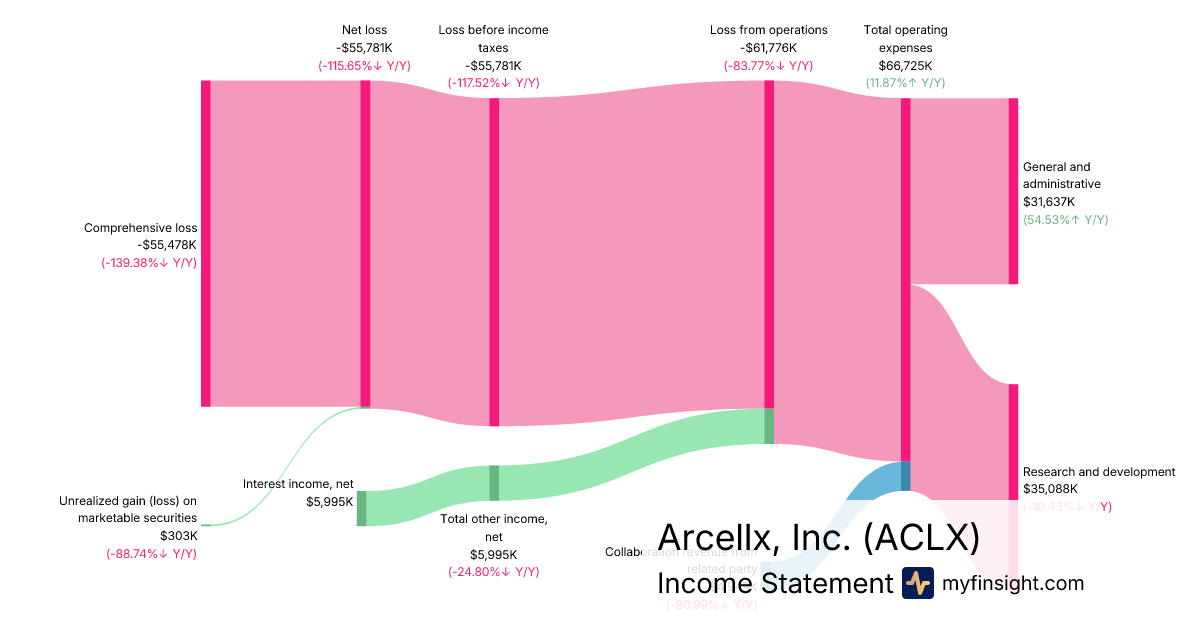 For the quarter ending 2025-09-30, ACLX made $4,949K in revenue. -$55,478K in net income. Net profit margin of -1120.99%.