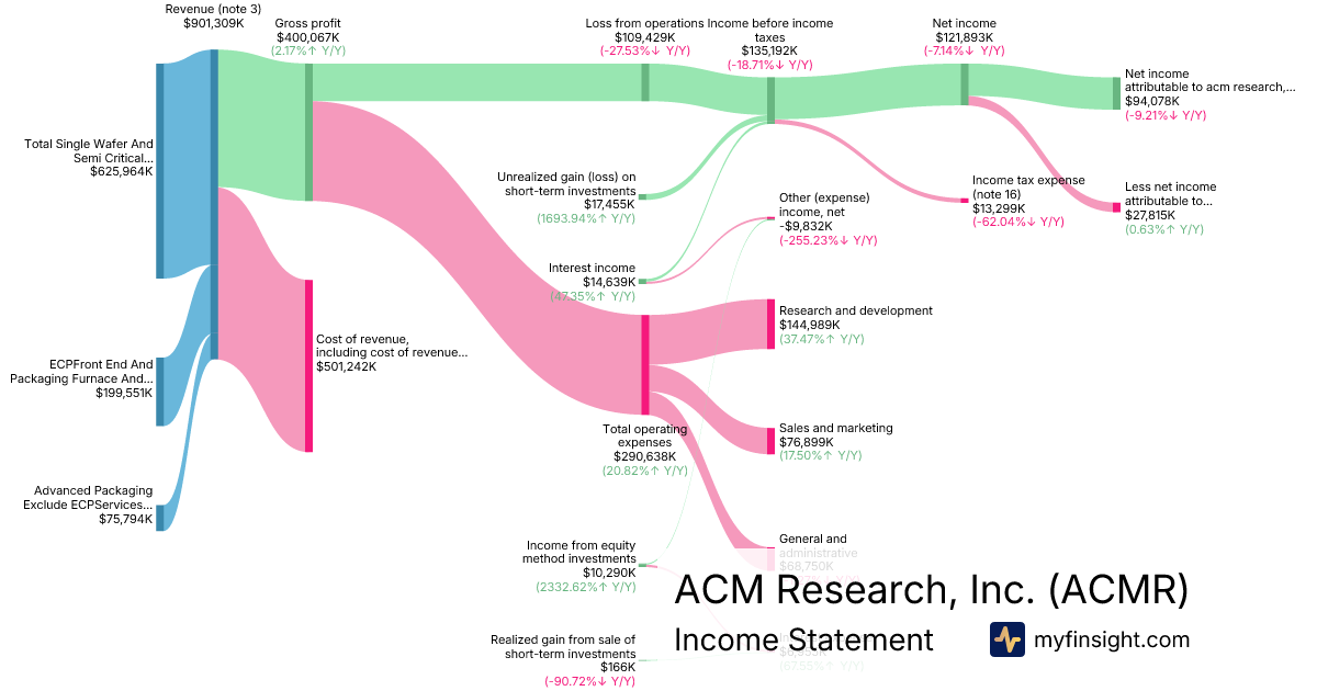 For the year ending 2025-12-31, ACMR made $901,309K in revenue. $94,078K in net income. Net profit margin of 10.44%.