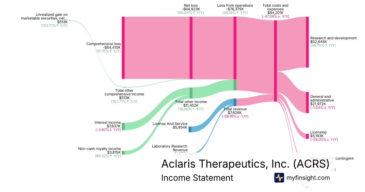 For the year ending 2025-12-31, ACRS made $7,826K in revenue. -$64,410K in net income. Net profit margin of -823.03%.