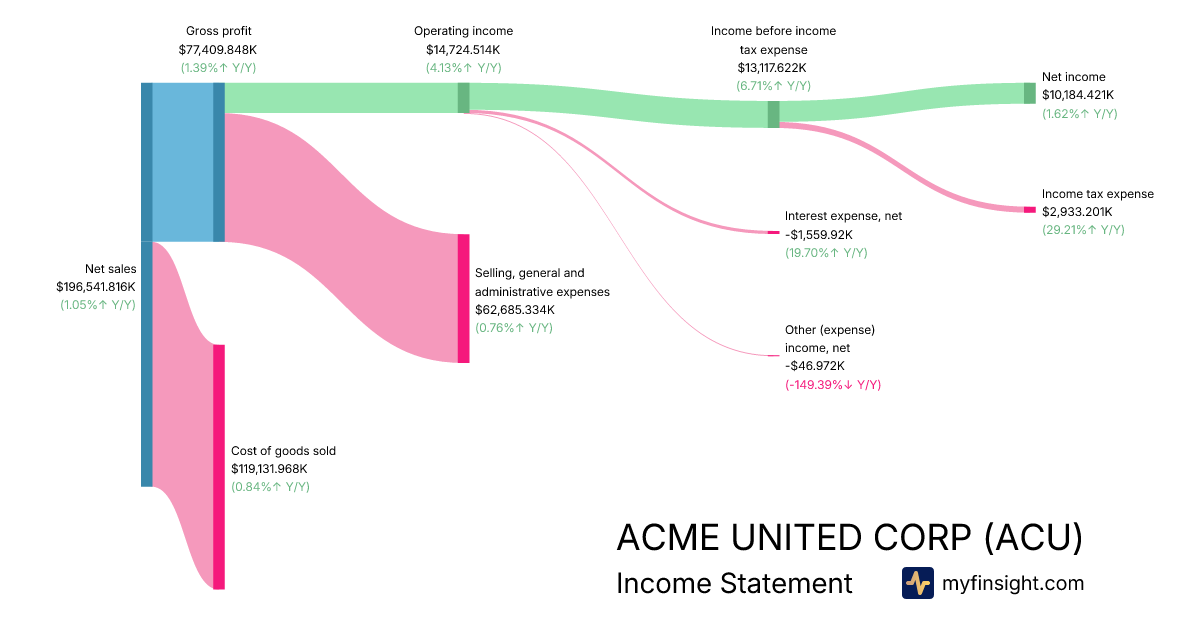 For the year ending 2025-12-31, ACU made $196,541.816K in revenue. $10,184.421K in net income. Net profit margin of 5.18%.