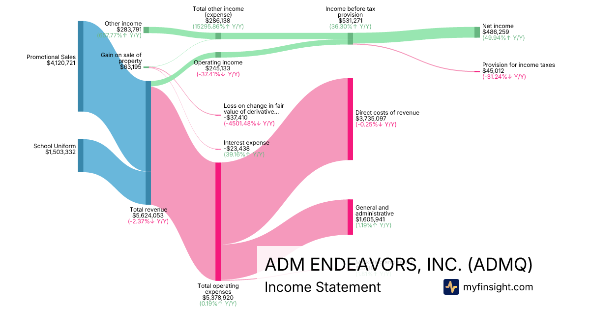 For the year ending 2025-12-31, ADMQ made $5,624,053 in revenue. $486,259 in net income. Net profit margin of 8.65%.