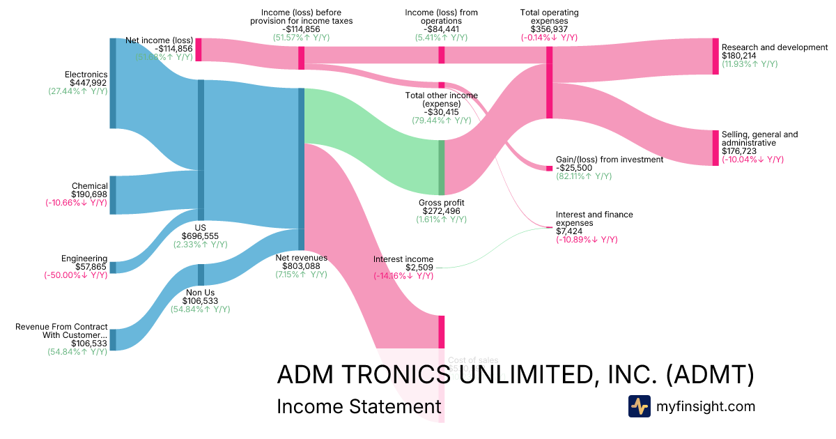 For the quarter ending 2025-12-31, ADMT made $803,088 in revenue. -$114,856 in net income. Net profit margin of -14.30%.