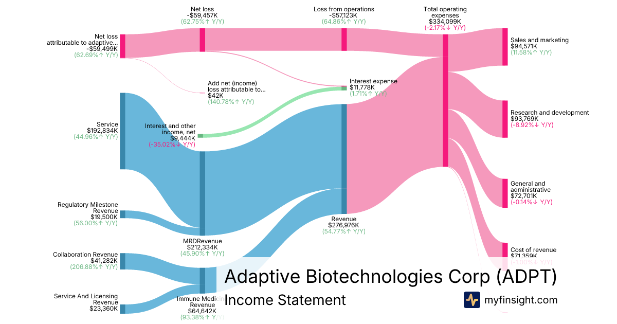 For the year ending 2025-12-31, ADPT made $276,976K in revenue. -$59,499K in net income. Net profit margin of -21.48%.