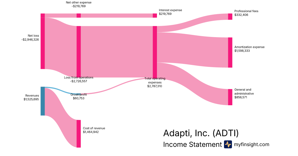 For the quarter ending 2025-12-31, ADTI made $1,525,695 in revenue. -$2,946,326 in net income. Net profit margin of -193.11%.