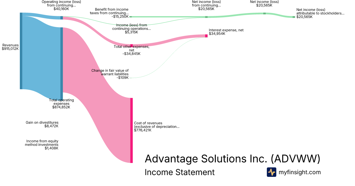 For the quarter ending 2025-09-30, ADVWW made $915,012K in revenue. $20,565K in net income. Net profit margin of 2.25%.