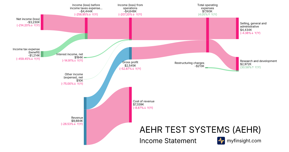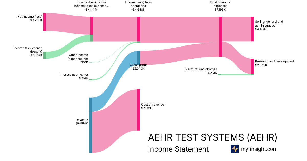 For the quarter ending 2025-11-28, AEHR made $9,884K in revenue. -$3,230K in net income. Net profit margin of -32.68%.