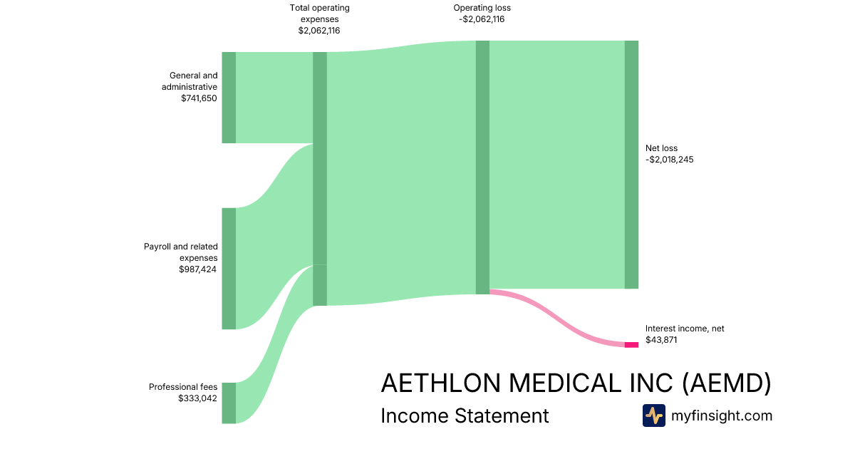 For the quarter ending 2025-12-31, AEMD made $2,105,987 in revenue. -$2,018,245 in net income. Net profit margin of -95.83%.