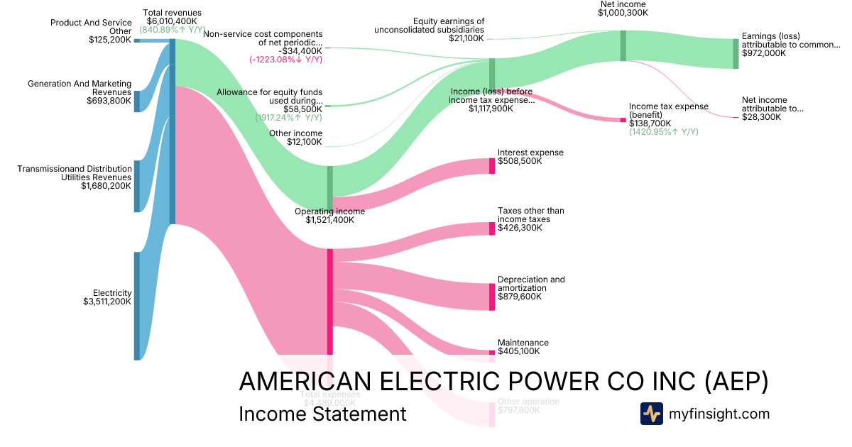 For the quarter ending 2025-09-30, AEP made $6,010,400K in revenue. $972,000K in net income. Net profit margin of 16.17%.