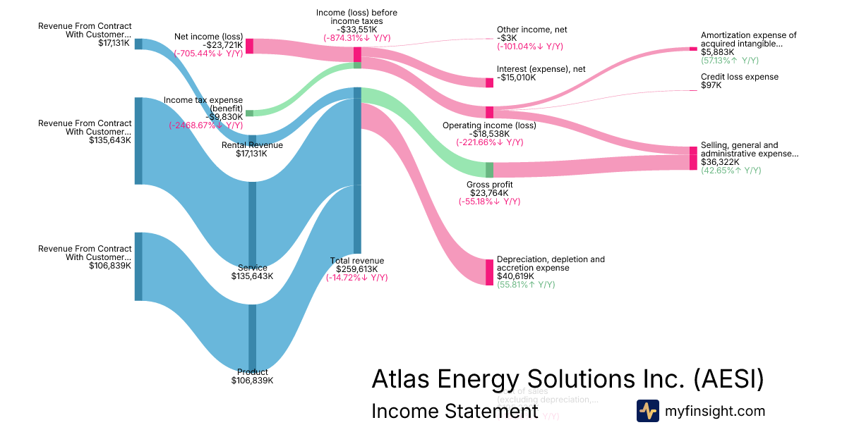 For the quarter ending 2025-09-30, AESI made $259,613,000 in revenue. -$23,721,000 in net income. Net profit margin of -9.14%.