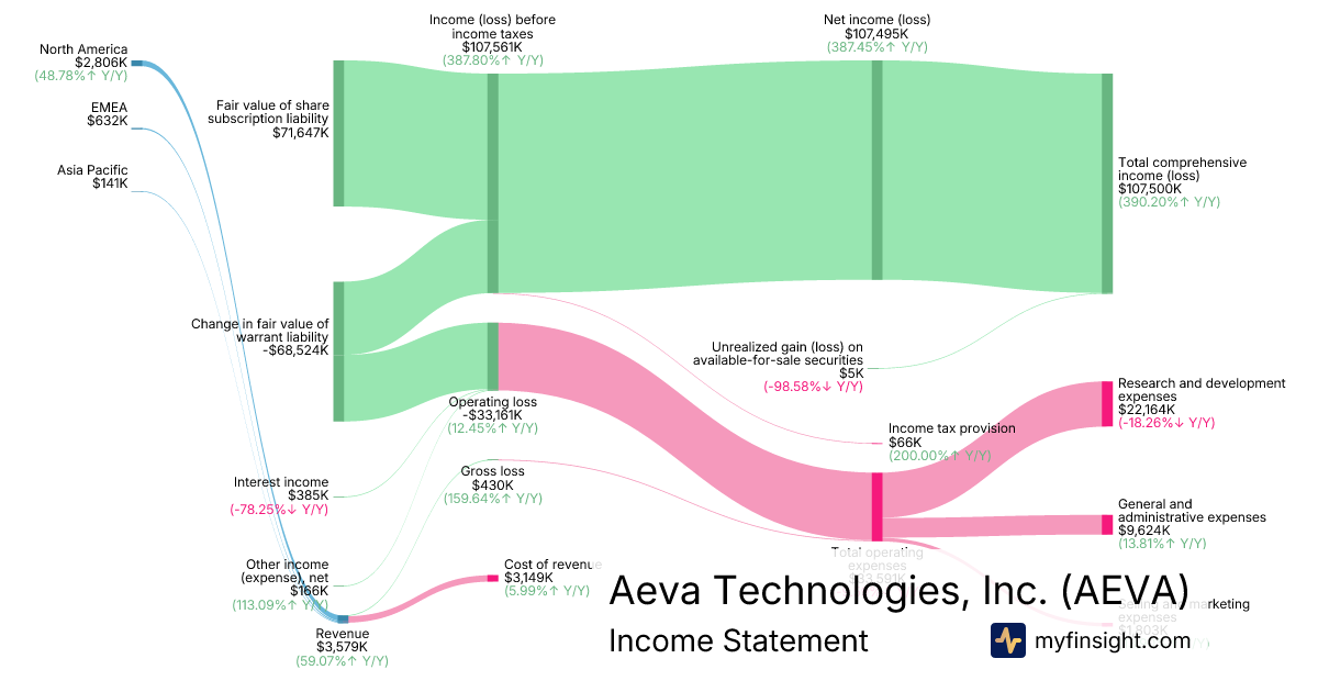For the quarter ending 2025-09-30, AEVA made $3,579K in revenue. $107,500K in net income. Net profit margin of 3003.63%.