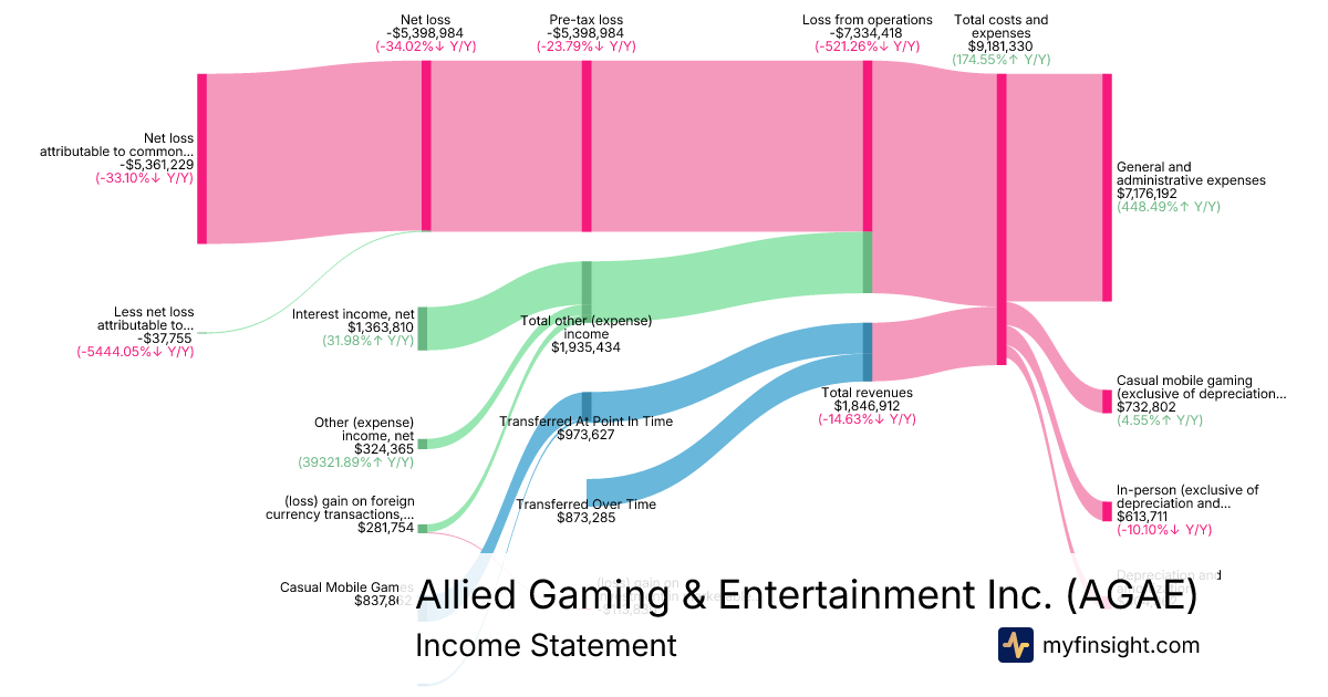 For the quarter ending 2025-09-30, AGAE made $1,846,912 in revenue. -$5,361,229 in net income. Net profit margin of -290.28%.
