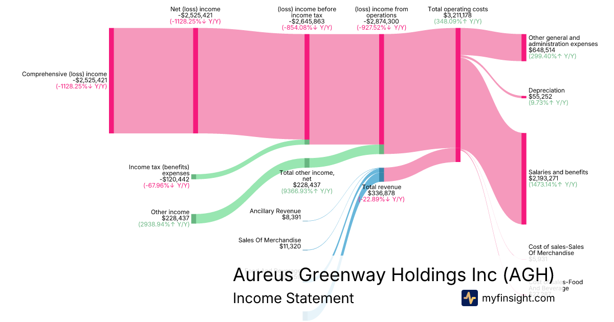 For the quarter ending 2025-09-30, AGH made $336,878 in revenue. -$2,525,421 in net income. Net profit margin of -749.65%.