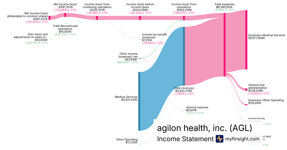 For the year ending 2025-12-31, AGL made $5,932,576K in revenue. -$391,347K in net income. Net profit margin of -6.60%.