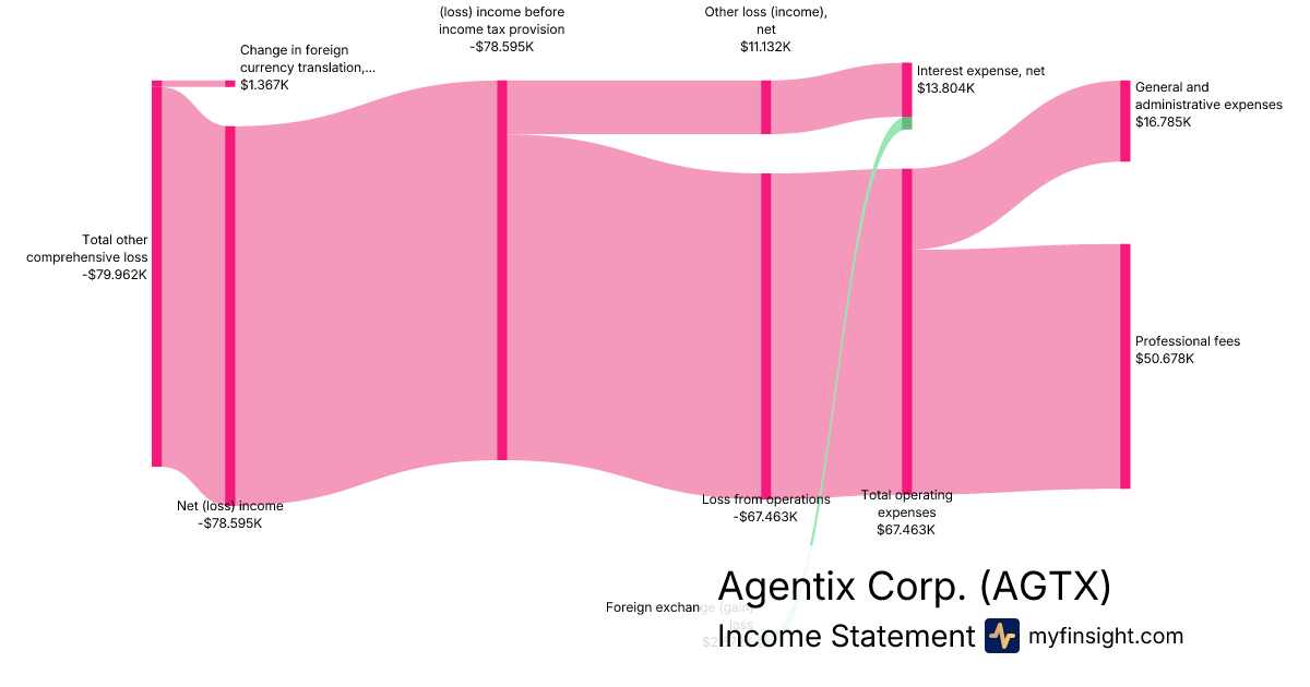 For the quarter ending 2025-12-31, AGTX made $81.267K in revenue. -$79.962K in net income. Net profit margin of -98.39%.