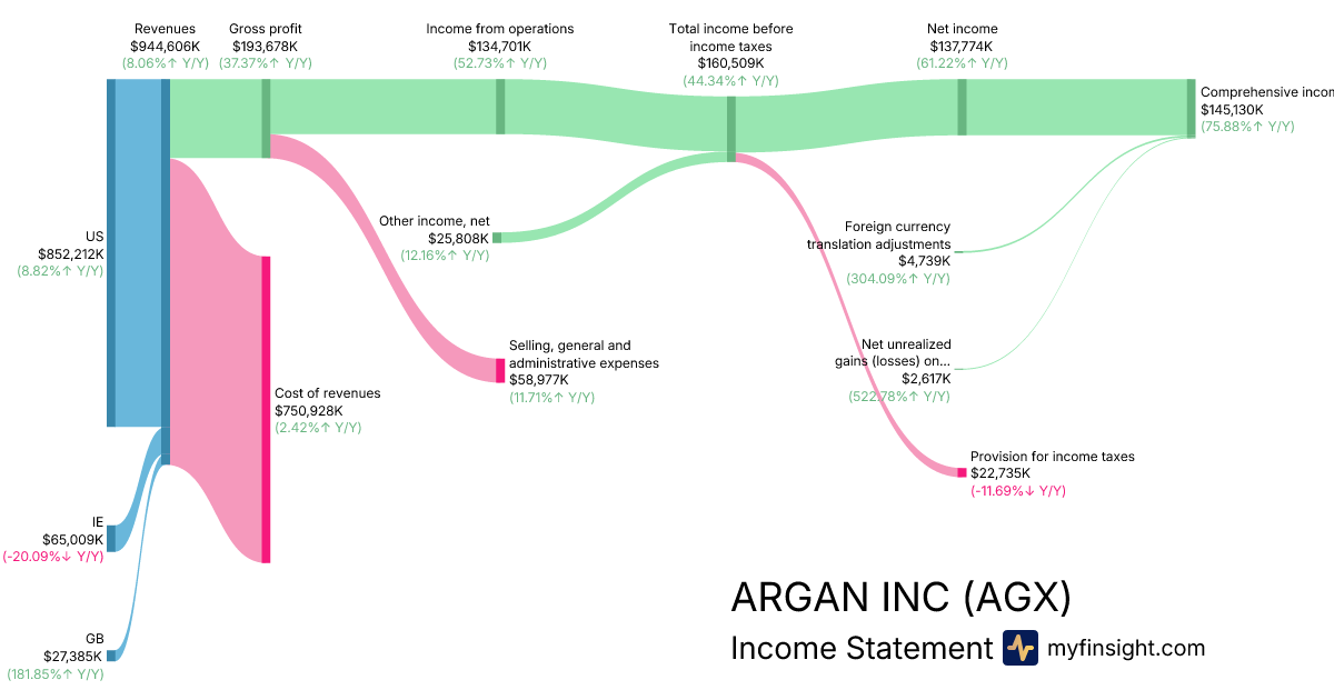 For the year ending 2026-01-31, AGX made $944,606K in revenue. $145,130K in net income. Net profit margin of 15.36%.