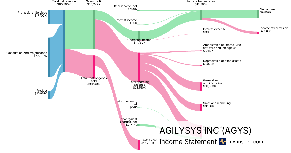For the quarter ending 2025-12-31, AGYS made $80,390K in revenue. $9,897K in net income. Net profit margin of 12.31%.