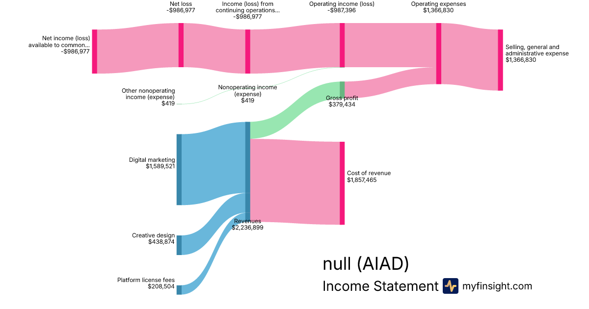 For the quarter ending 2024-09-30, AIAD made $2,236,899 in revenue. -$986,977 in net income. Net profit margin of -44.12%.