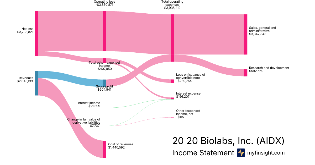 For the year ending 2025-12-31, AIDX made $2,045,133 in revenue. -$3,738,821 in net income. Net profit margin of -182.82%.