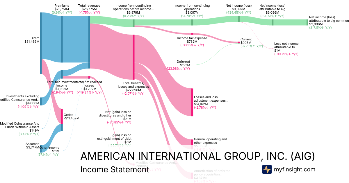 For the year ending 2025-12-31, AIG made $26,775M in revenue. $3,096M in net income. Net profit margin of 11.56%.