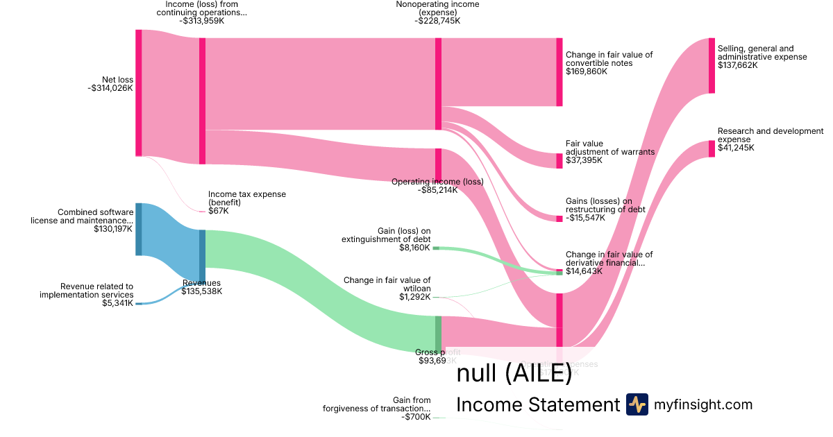 For the quarter ending 2024-06-30, AILE made $135,538K in revenue. -$314,026K in net income. Net profit margin of -231.69%.