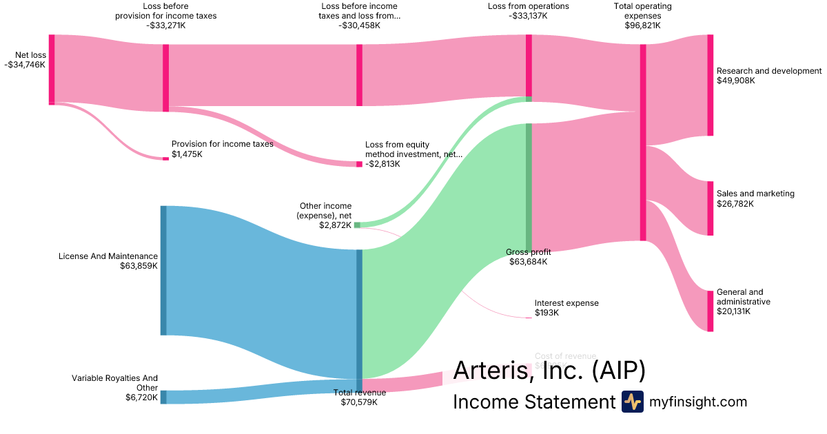For the year ending 2025-12-31, AIP made $70,579K in revenue. -$34,746K in net income. Net profit margin of -49.23%.