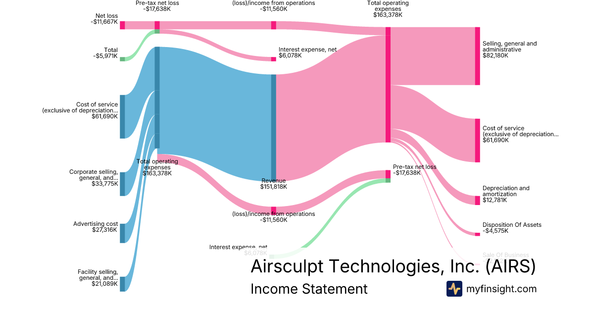 For the year ending 2025-12-31, AIRS made $151,818K in revenue. -$11,667K in net income. Net profit margin of -7.68%.