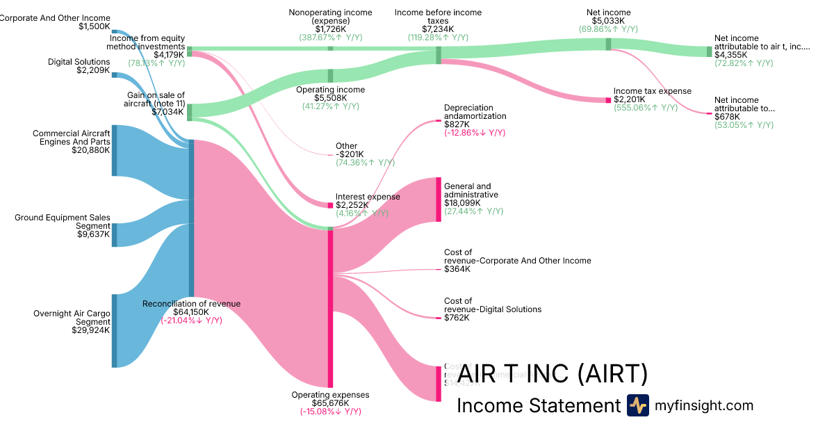 | Net income attributable to air t, inc. stockholders | 4,355 | -1,636 | 2,520 | -335 |