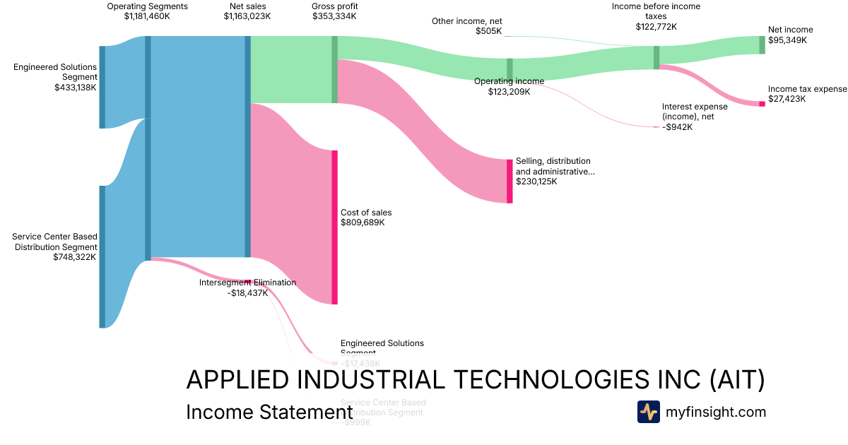 For the quarter ending 2025-12-31, AIT made $1,163,023K in revenue. $95,349K in net income. Net profit margin of 8.20%.