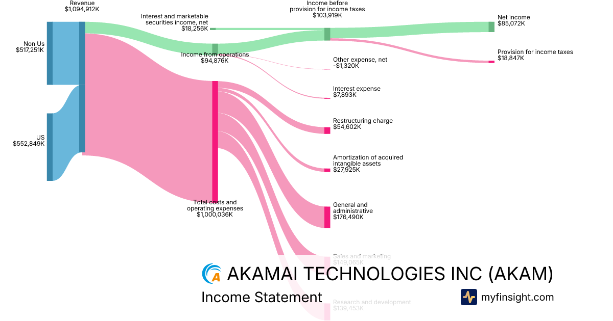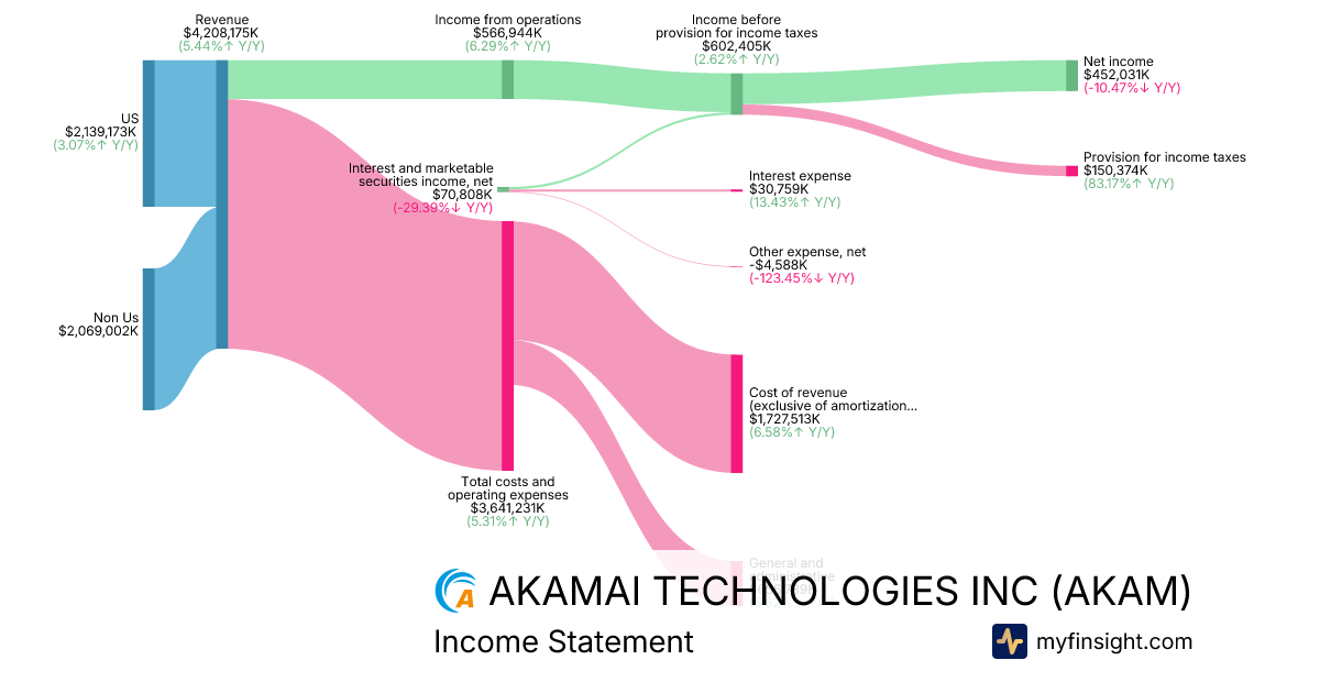 For the year ending 2025-12-31, AKAM made $4,208,175K in revenue. $452,031K in net income. Net profit margin of 10.74%.