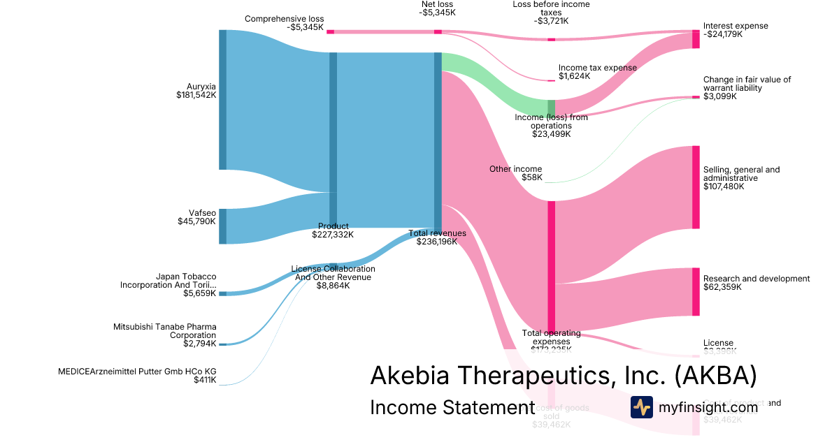 For the year ending 2025-12-31, AKBA made $236,196K in revenue. -$5,345K in net income. Net profit margin of -2.26%.