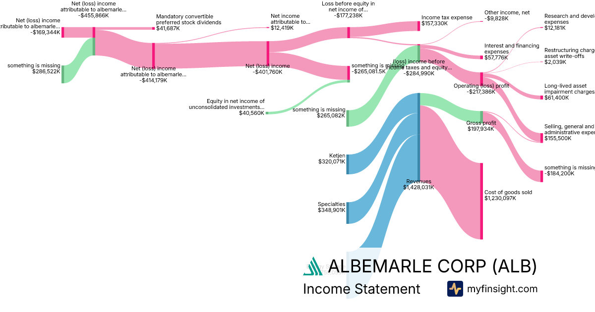 For the year ending 2025-12-31, ALB made $5,142,733K in revenue. -$677,378K in net income. Net profit margin of -13.17%.