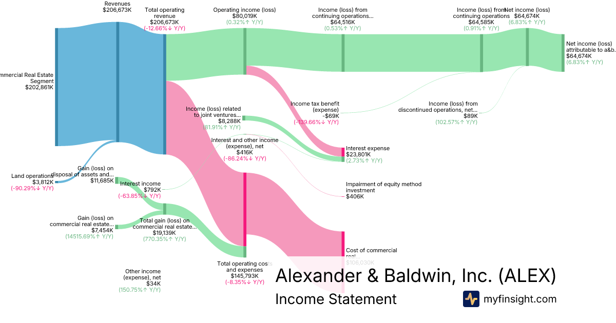 For the year ending 2025-12-31, ALEX made $206,673K in revenue. $64,674K in net income. Net profit margin of 31.29%.