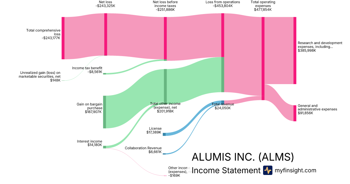 For the year ending 2025-12-31, ALMS made $24,050K in revenue. -$243,177K in net income. Net profit margin of -1011.13%.