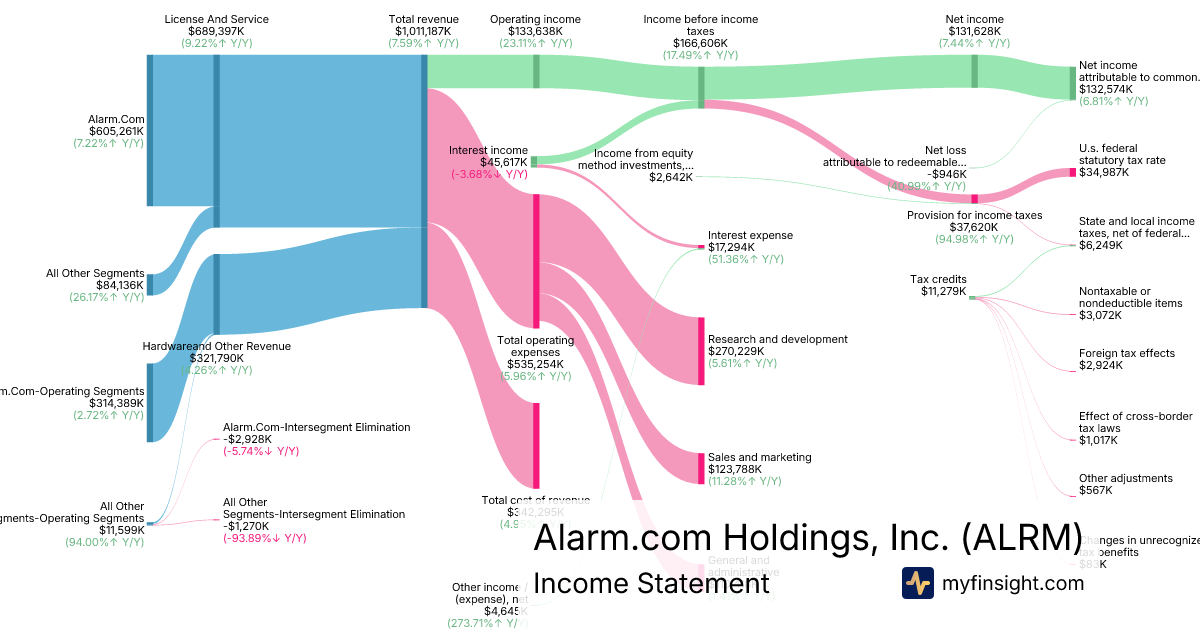 For the year ending 2025-12-31, ALRM made $1,011,187K in revenue. $132,574K in net income. Net profit margin of 13.11%.