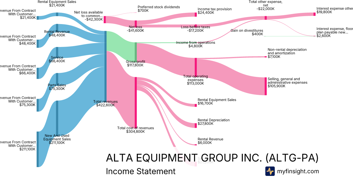 For the quarter ending 2025-09-30, ALTG-PA made $422,600K in revenue. -$42,300K in net income. Net profit margin of -10.01%.