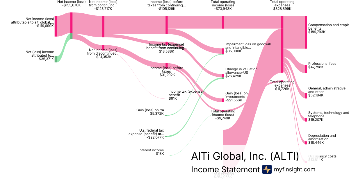 For the year ending 2025-12-31, ALTI made $254,956K in revenue. -$119,699K in net income. Net profit margin of -46.95%.
