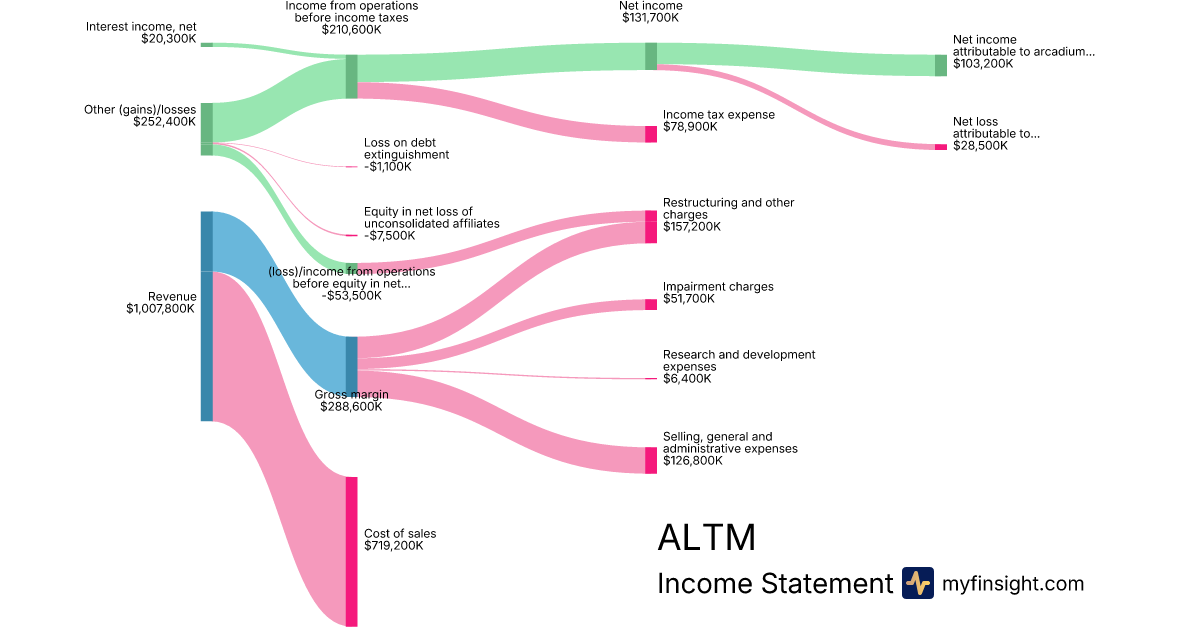 For the year ending 2024-12-31, ALTM made $1,007,800K in revenue. $103,200K in net income. Net profit margin of 10.24%.