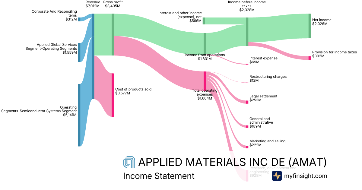 For the quarter ending 2026-01-25, AMAT made $7,012M in revenue. $2,026M in net income. Net profit margin of 28.89%.